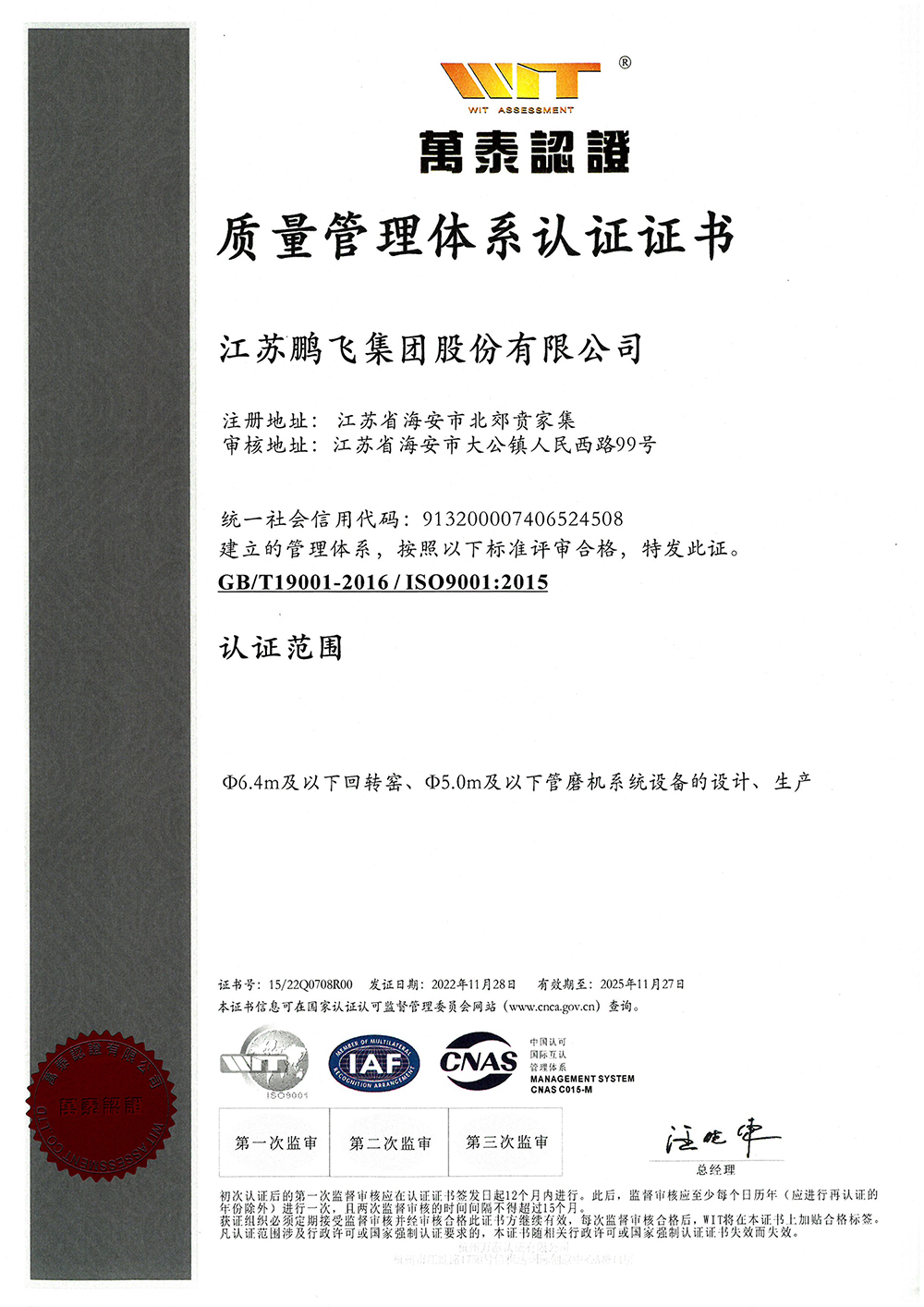 質(zhì)量管理體系認證證書