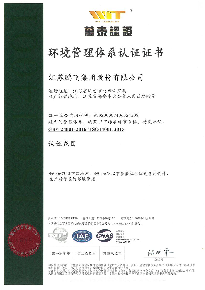 環(huán)境管理體系認證證書