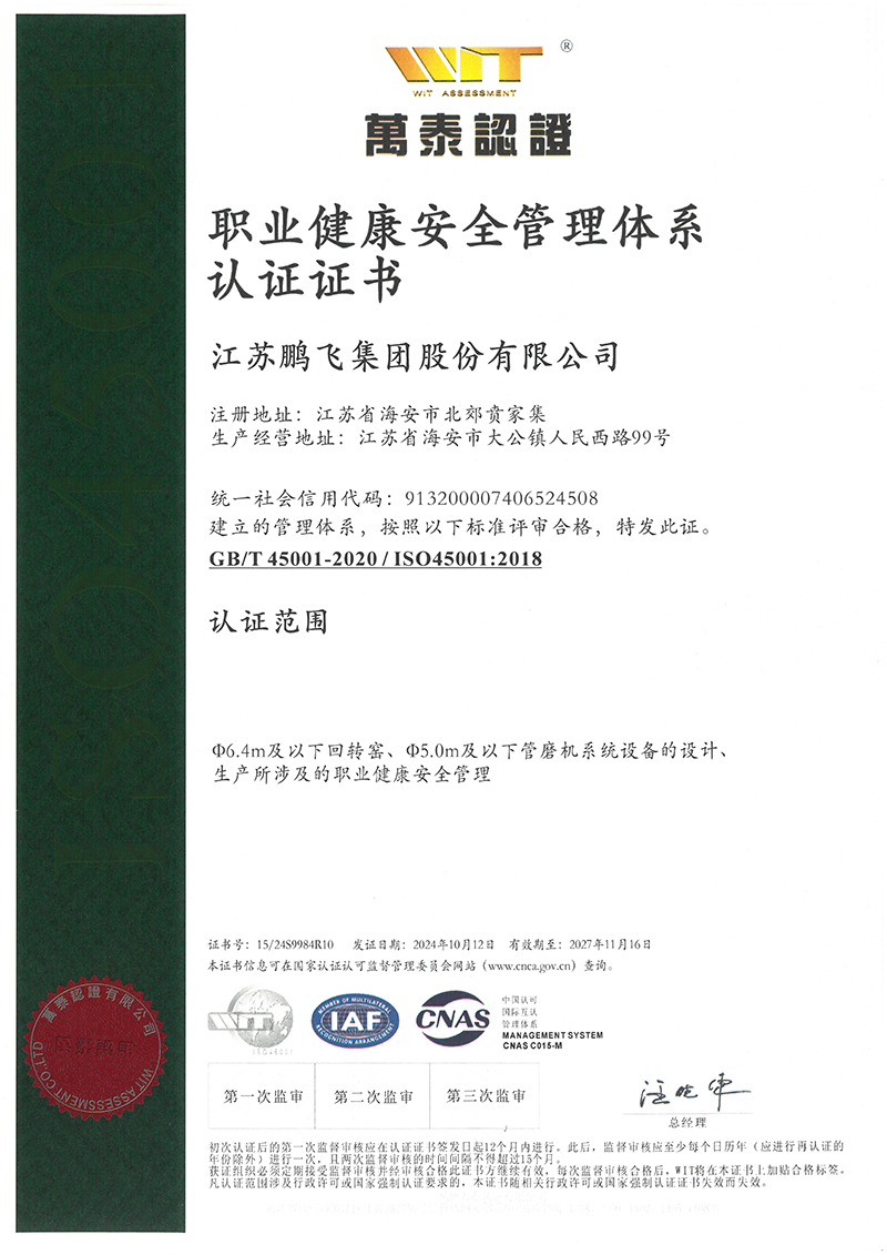 職業(yè)健康安全管理體系認證證書