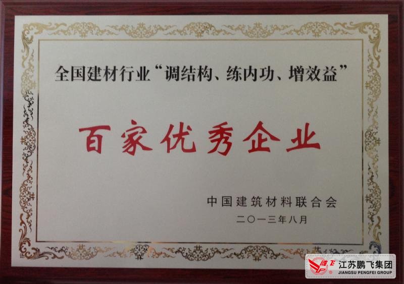 為樹立典型,有效遏制經(jīng)濟(jì)效益下滑,推進(jìn)建材行業(yè)調(diào)整結(jié)構(gòu)和轉(zhuǎn)型升級(jí),弘揚(yáng)正能量,發(fā)揮優(yōu)秀企業(yè)的典型示范作用,促進(jìn)行業(yè)科學(xué)發(fā)展,中國(guó)建材聯(lián)合會(huì)與各省市地方建材行業(yè)協(xié)會(huì)聯(lián)手開展推薦表彰“調(diào)結(jié)構(gòu)、練內(nèi)功、增效益”百家優(yōu)秀企業(yè)評(píng)比表彰活動(dòng)。江蘇鵬飛集團(tuán)強(qiáng)抓市場(chǎng)機(jī)遇,堅(jiān)持科學(xué)發(fā)展之路,創(chuàng)新經(jīng)營(yíng)模式,被授予“調(diào)結(jié)構(gòu)、練內(nèi)功、增效益”百家優(yōu)秀企業(yè)榮譽(yù)稱號(hào)。