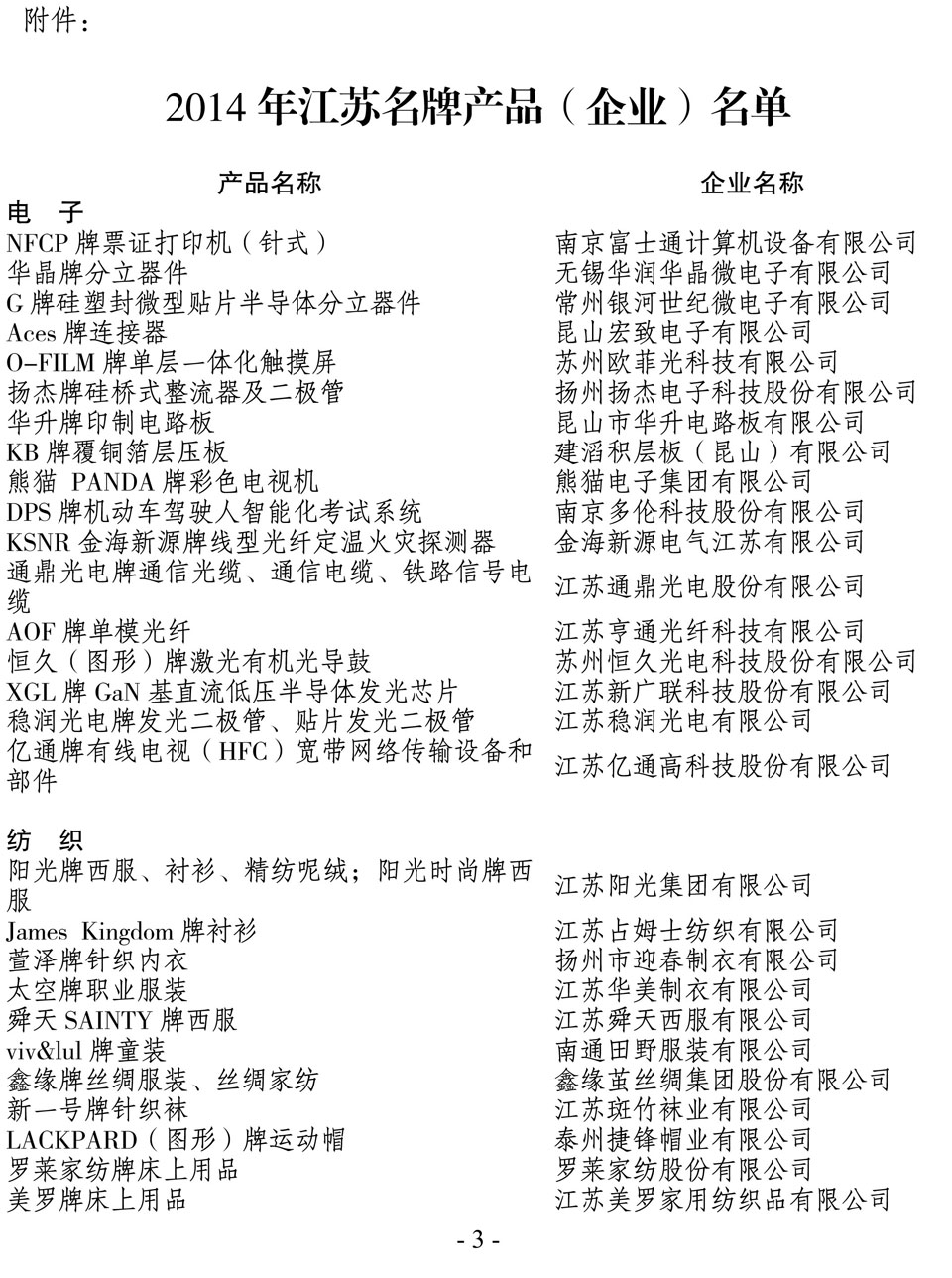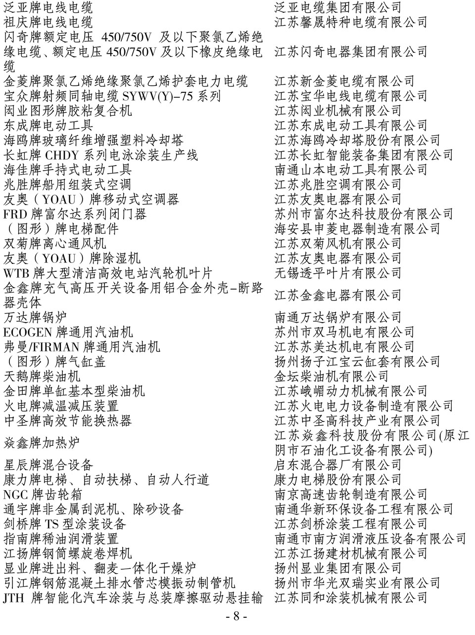 日前,江蘇省名牌戰(zhàn)略推進委員會公布了2014年江蘇省名牌產(chǎn)品名單,“