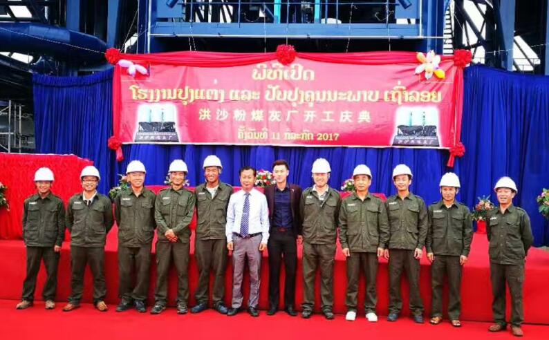 老撾粉煤灰廠選用江蘇鵬飛集團制造的φ2.6×13m粉煤灰專用球磨機。老撾中央政治局常委到洪沙粉煤灰廠參加慶典并指導工作。