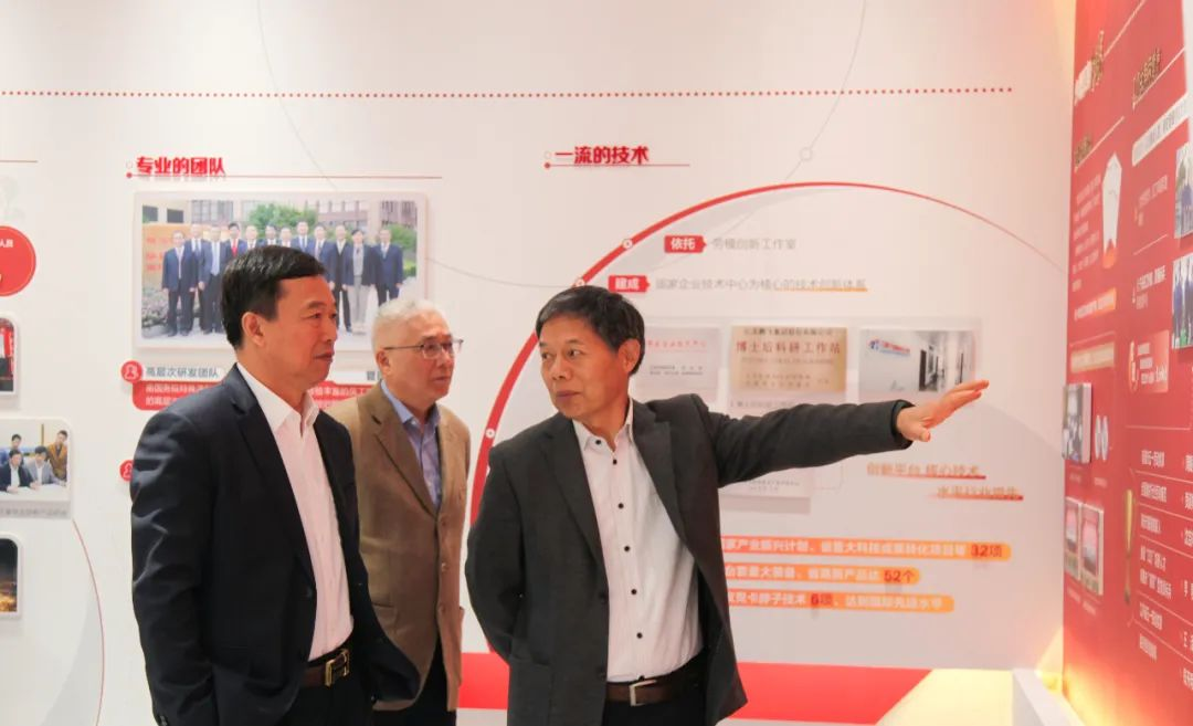 近日,江蘇省進(jìn)出口商會(huì)會(huì)長(zhǎng)笪家祥來(lái)鵬飛集團(tuán)調(diào)研考察,海安市商務(wù)局黨組成員、副局長(zhǎng)周先宇,公司董事長(zhǎng)王家安、副總經(jīng)理賁道林陪同參觀了鵬飛展示中心、黨建館。王家安詳細(xì)介紹了鵬飛的發(fā)展歷程、工業(yè)技術(shù)、創(chuàng)新成果及未來(lái)規(guī)劃,笪會(huì)長(zhǎng)也對(duì)鵬飛集團(tuán)的經(jīng)營(yíng)模式、科技創(chuàng)新、節(jié)能環(huán)保、綠色發(fā)展、信息化建設(shè)等情況進(jìn)行了解。