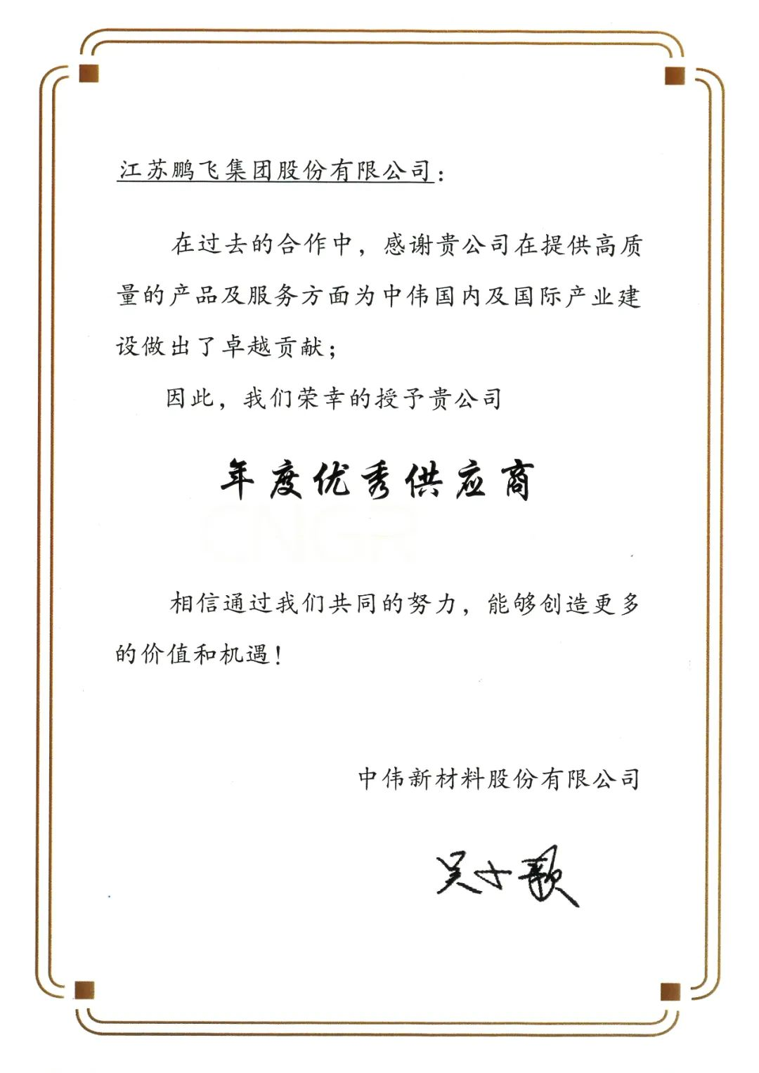 海外項目感謝信 | 年度優(yōu)秀供應商