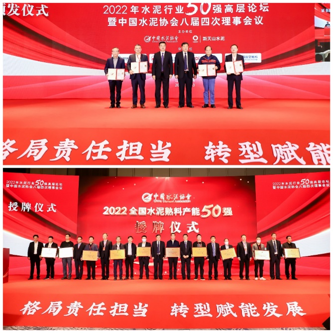 會(huì)議期間還舉辦了隆重的協(xié)會(huì)新增補(bǔ)變更副會(huì)長、新增常務(wù)理事單位頒發(fā)證書儀式以及2022年全國水泥熟料產(chǎn)能50強(qiáng)授牌儀式。