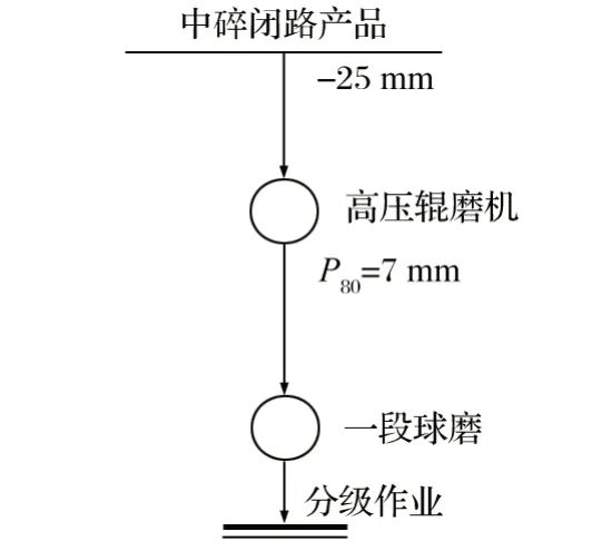 /d 生產(chǎn)系統(tǒng)設(shè)備陳舊,且設(shè)備規(guī)格小、數(shù)量多,管理和維護(hù)工作量大,因此擬對(duì)碎磨流程進(jìn)行技術(shù)升級(jí)改造。通過初步調(diào)研和分析,擬采用高壓輥磨機(jī)進(jìn)行碎磨系統(tǒng)改造,實(shí)現(xiàn)單系列生產(chǎn)能力達(dá)到 10 000 t