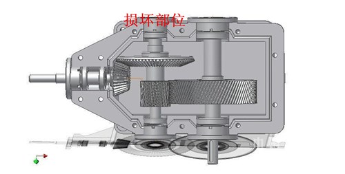 第二部分:減速機(jī)損壞維修以及后期防護(hù)。本公司四個(gè)鎖風(fēng)閥的減速機(jī)都采用弗蘭德的垂直軸減速機(jī),在鎖風(fēng)閥承受較大力矩的時(shí)候,減速機(jī)內(nèi)部各級(jí)齒輪也相應(yīng)的承受較大的力,同時(shí)由于該種減速機(jī)二級(jí)傳動(dòng)軸兩側(cè)采用推力調(diào)心滾子軸承,而且軸承端蓋沒(méi)有進(jìn)行螺栓緊固,只是做了密封處理,因此在承受較大力時(shí),也就是在鎖風(fēng)閥卡停的情況下會(huì)經(jīng)常出現(xiàn)將兩側(cè)軸承端蓋頂開的情況,浪費(fèi)潤(rùn)滑油,增加生產(chǎn)風(fēng)險(xiǎn)(如圖三)。