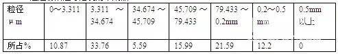 我們對(duì)廣東JYSN水泥廠(chǎng)(上圖2聯(lián)合粉磨系統(tǒng))的VPM出料以及經(jīng)V選選粉后旋風(fēng)筒收集的與收塵器收集的進(jìn)球磨機(jī)的2種物料進(jìn)行取樣,做顆粒級(jí)配分析,結(jié)果如下: