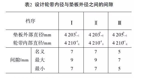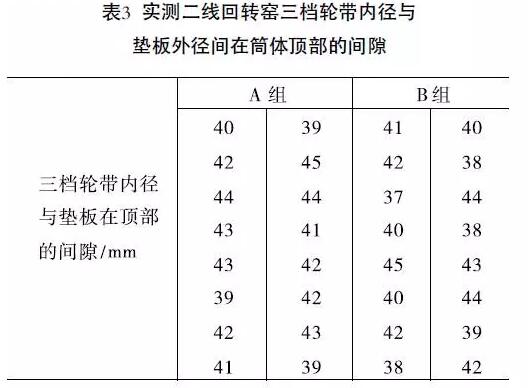 我們對2線三檔輪帶內(nèi)徑與墊板外徑在筒體頂部的間隙進(jìn)行測量,測量數(shù)據(jù)見表3