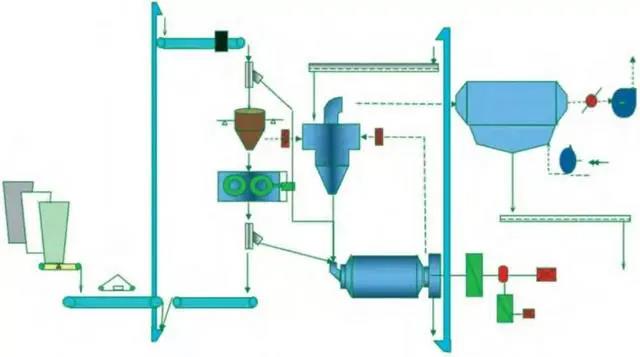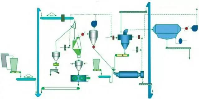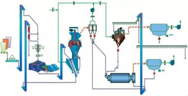 該系統(tǒng)工藝簡單,設(shè)備少,維護工作量少,水泥成品全部經(jīng)過球磨機粉磨,成品粒度分布較寬,水泥性能穩(wěn)定。