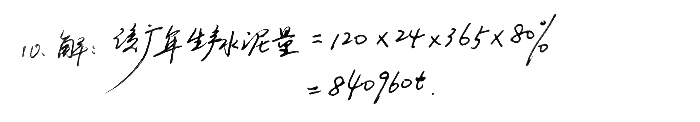 10、某廠水泥磨臺時產(chǎn)量為120t/h,問運(yùn)轉(zhuǎn)率為80%時,該廠一年可以生產(chǎn)多少水泥?