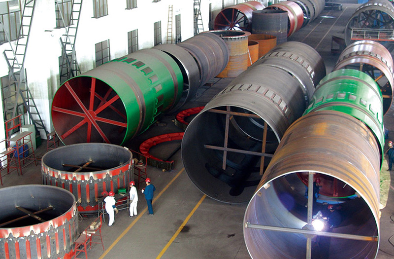 1.筒體與窯襯:筒體由鋼板卷成,是物料完成物理與化學(xué)變化的容器,因而是回轉(zhuǎn)窯的機(jī)體。窯內(nèi)物料溫度可達(dá)1450℃以上,故筒體內(nèi)均砌筑耐火材料,其保護(hù)筒體和減少散熱的作用。按照物料的變化過程,筒體內(nèi)劃分成各工作帶,如烘干帶、預(yù)熱帶、分解帶、燒成帶和冷卻帶。